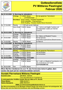 Gerne informieren wir Sie über die kommenden Messtermine im Jänner 2026 bei uns in Dreistetten und im Pfarrverband.